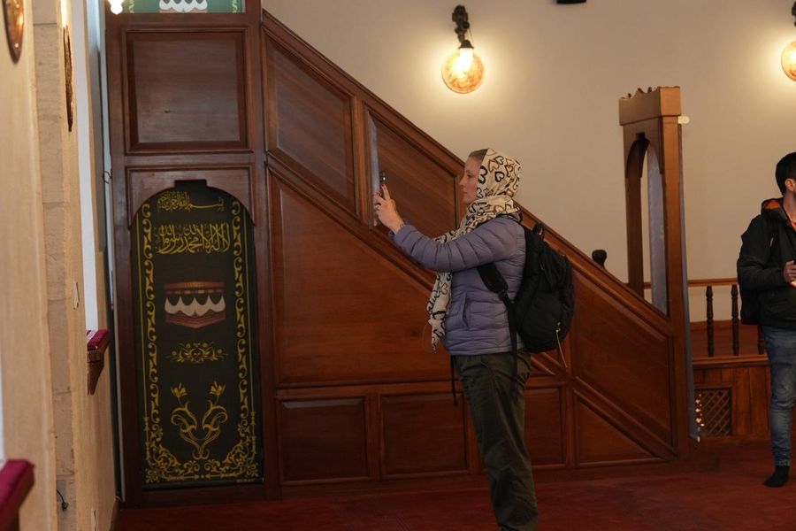 Gerçekleştirilen program kapsamında, ihya çalışmalarının ardından yeniden ibadete kazandırılan vakıf eseri camimizde yapının deprem öncesi ve sonrası süreci uluslararası basın temsilcilerine yerinde aktarıldı.