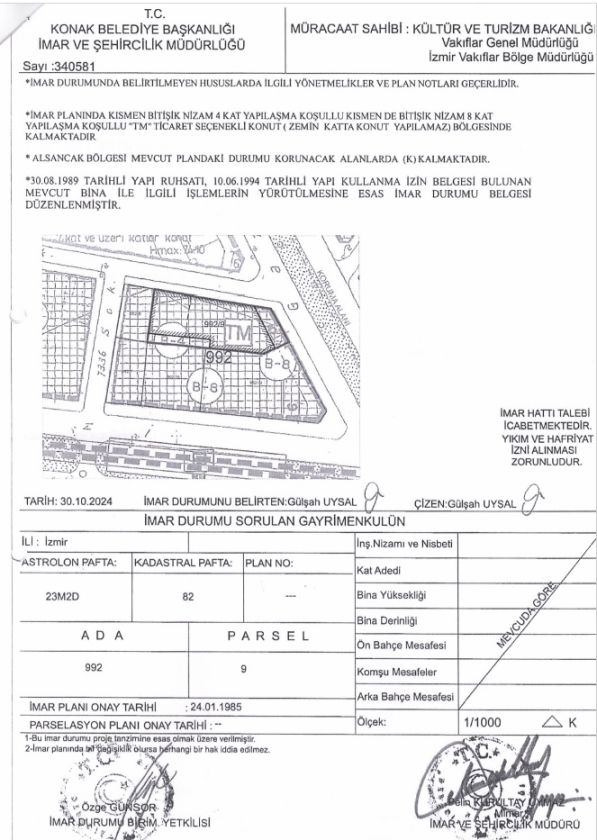 İzmir İli Konak İlçesi Akdeniz Mahallesi 992 Ada 9 Parsel
